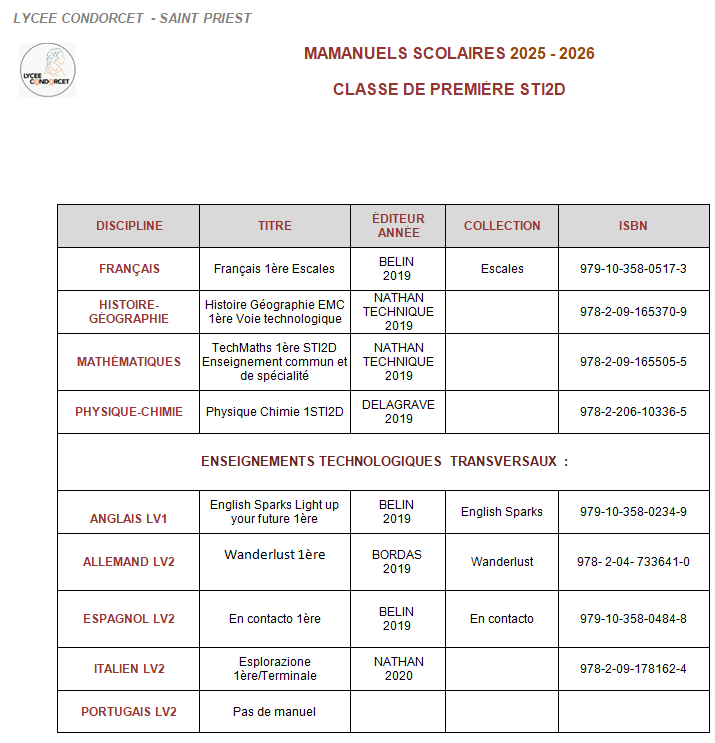 Manuels de 1ère STI2D