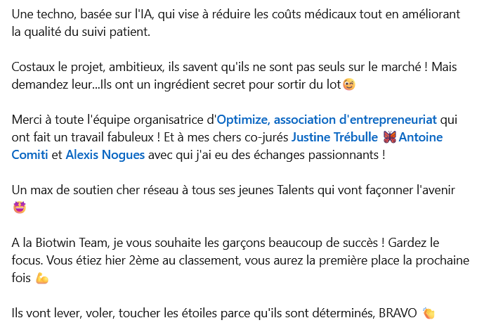 Un grand bravo à nos 4 étudiants de prépa ECT2 qui ont terminé 2ème lors du concours organisé par l’association Optimize de TBS (Toulouse Business School)