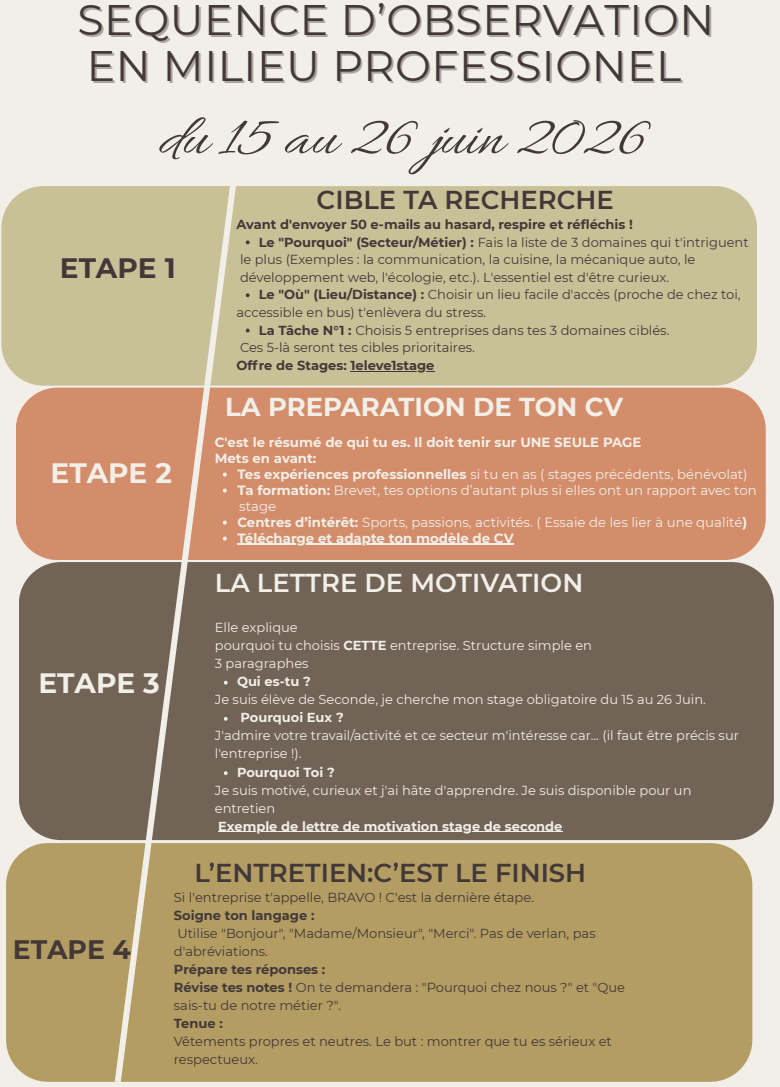 Ce stage obligatoire est un élément déterminant dans ton dossier PARCOURSUP que tu devras compléter en terminale