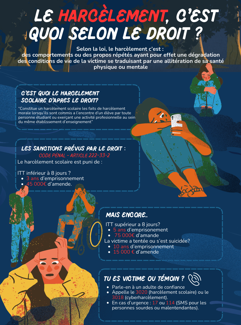 Avec leur professeur, Mme MADEC, les élèves de la spécialité DGEMC vous proposent leur travail afin de vous sensibiliser à la lutte contre le harcèlement.